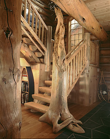 staircases, log stair railing and log straight railing with